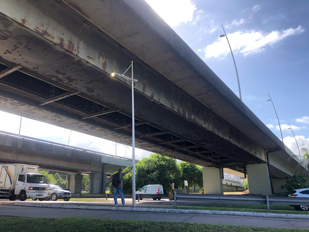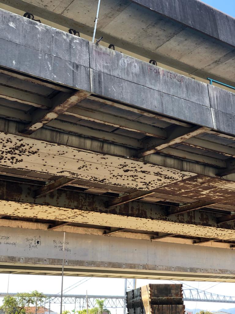Pintura estrutura metálica ponte Pedro Ivo Campos