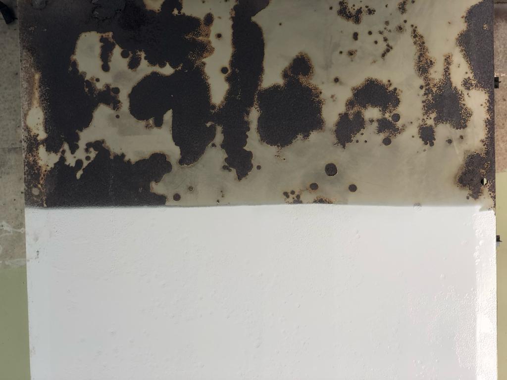 Após jateamento (metal quase branco), foram aplicadas camadas de tinta epoxi rica em zinco, tinta epoxi normal e tinta poliuretano, para atender a exigência de durabilidade (anos).